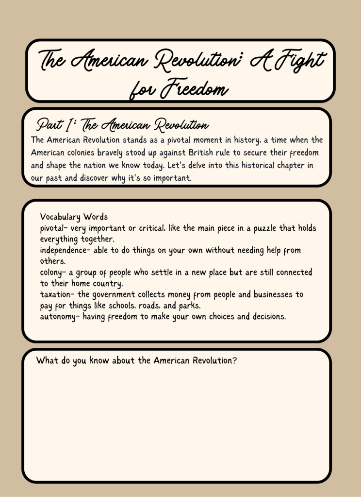 Word Search: Find and circle the following words related to the American Revolutionary War: