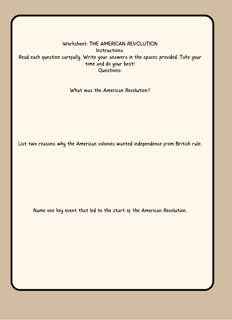 Read each question carefully. Write your answers in the spaces provided. Have fun learning about the Treaty of Paris 1783!