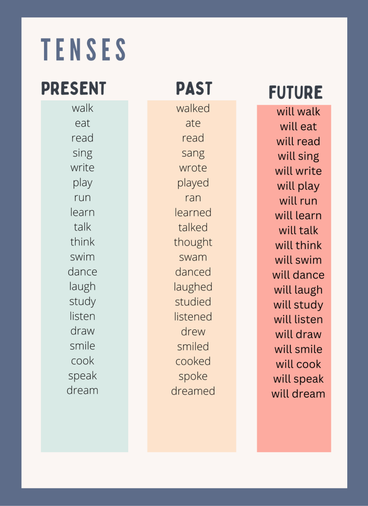 In the English language, verb tenses play a crucial role in indicating the timing of actions or events. Whether we’re describing something happening now, recounting past occurrences, or predicting future events, verb tenses help us communicate with clarity and precision. Let’s explore the three primary verb tenses: present, past, and future.