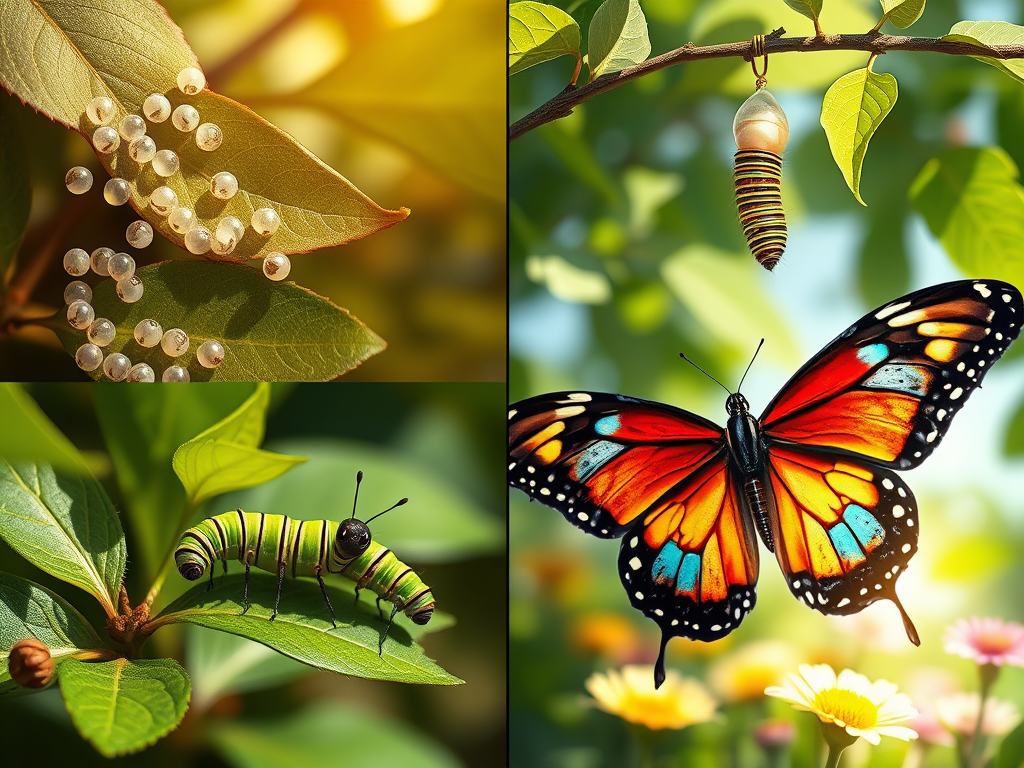 Butterflies go through four stages in their life. This process is called metamorphosis (meh-tuh-MOR-fuh-sis), which means a complete change in body shape. 1. Egg 2. Caterpillar (Larva) 3. Chrysalis (Pupa) 4. Adult Butterfly