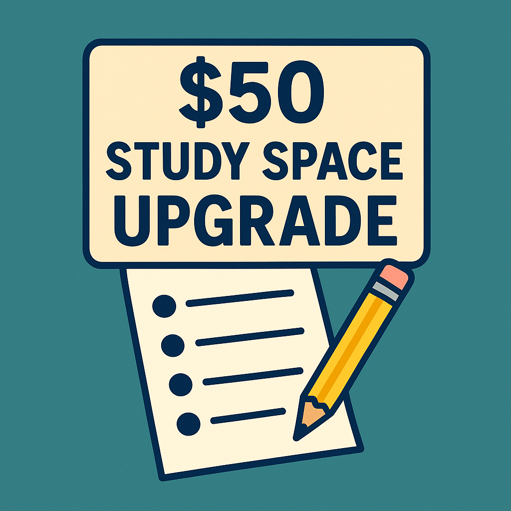 Imagine you’ve been given $50 to make your study space more comfortable and productive. You can use it to buy supplies, decorate, or improve your learning environment — but you can’t go over budget!