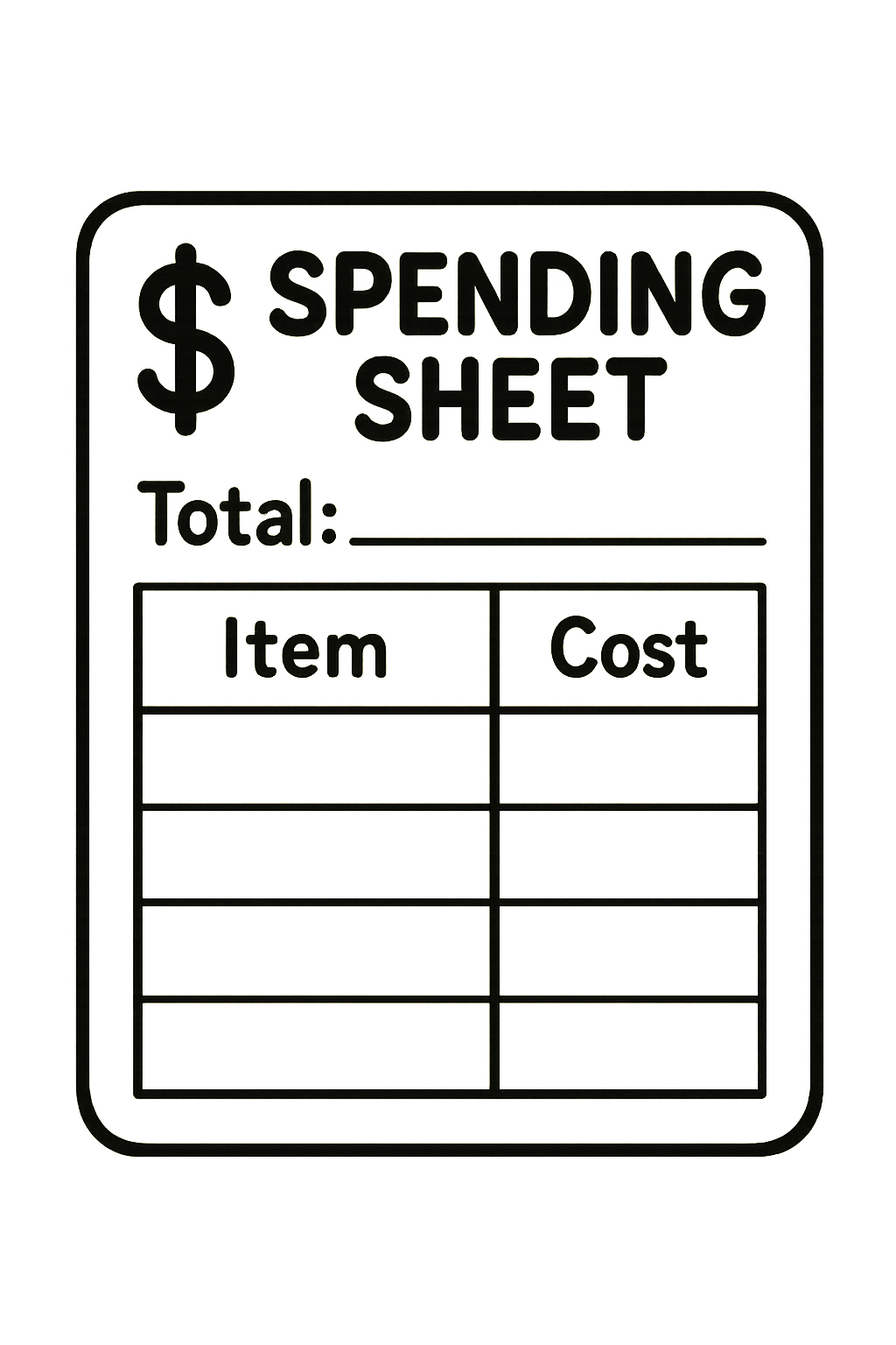 - Spending sheet (paper or laminated)