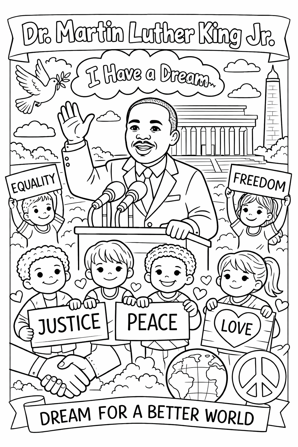 (This pairs beautifully with your Dr. King coloring page or a peace-and-unity themed design.)