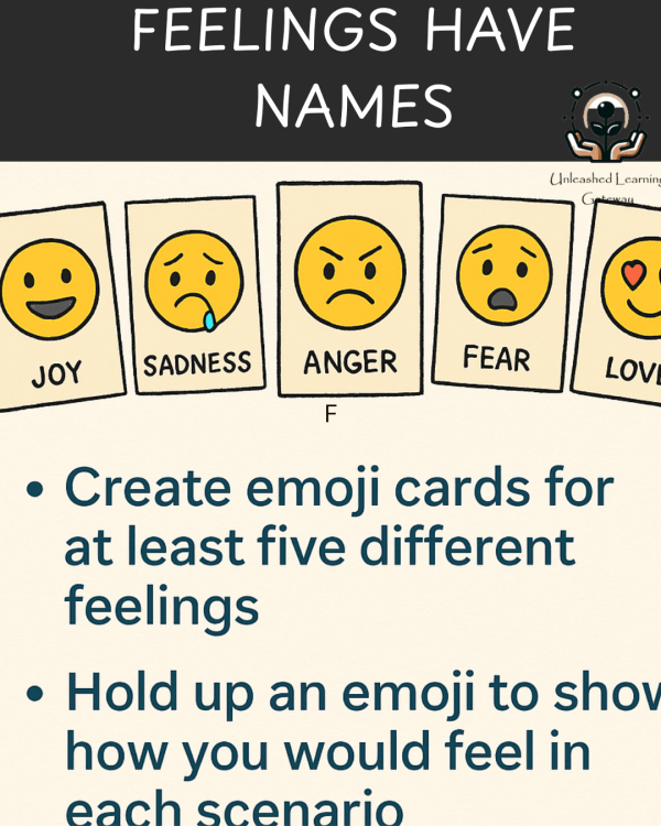 🧠 Objective: Help students express emotions by creating their own emoji cards and using them to respond to real-life scenarios. https://www.youtube.com/shorts/R0KfKCLuT7c?feature=share ✂️ Materials Needed: - 5 blank index cards per student - Markers or crayons - List of scenarios - Optional: Hole punch and string to make an “Emoji Fan” 🎨 Step 1: Create Emoji... Continue Reading →