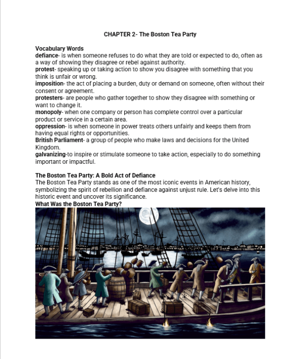 CHAPTER 3- The Battle of Lexington and Concord Vocabulary escalate- to increase or intensify, especially in terms of a conflict or problem. militia- a group of ordinary citizens who are trained and organized to act as a military force in times of need. disperse- to scatter or spread out in different directions. skirmish- a small,... Continue Reading →